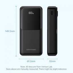 Power Bank Vention 20000mAh(Micro-USB/C/A/A) со встроенными кабелями 22.5W Чёрный с LED Дисплеем, шт.