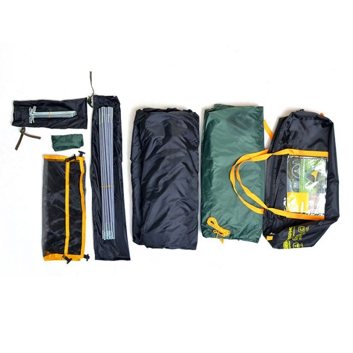 • Особливості 2 дуги , ремонтний набір у комплекті , набір кілочків , 2 тамбура , в комплекті чохол , підвісна поличка , всі шви проклеєні