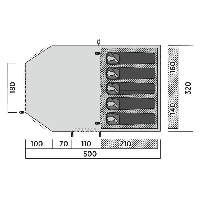 • Зовнішній тент WeatherGuard 3000, 190T поліестер із PU-покриттям, без PFC, вогнестійкий