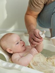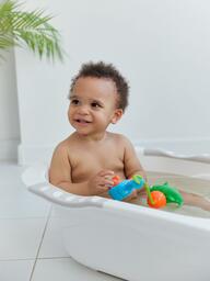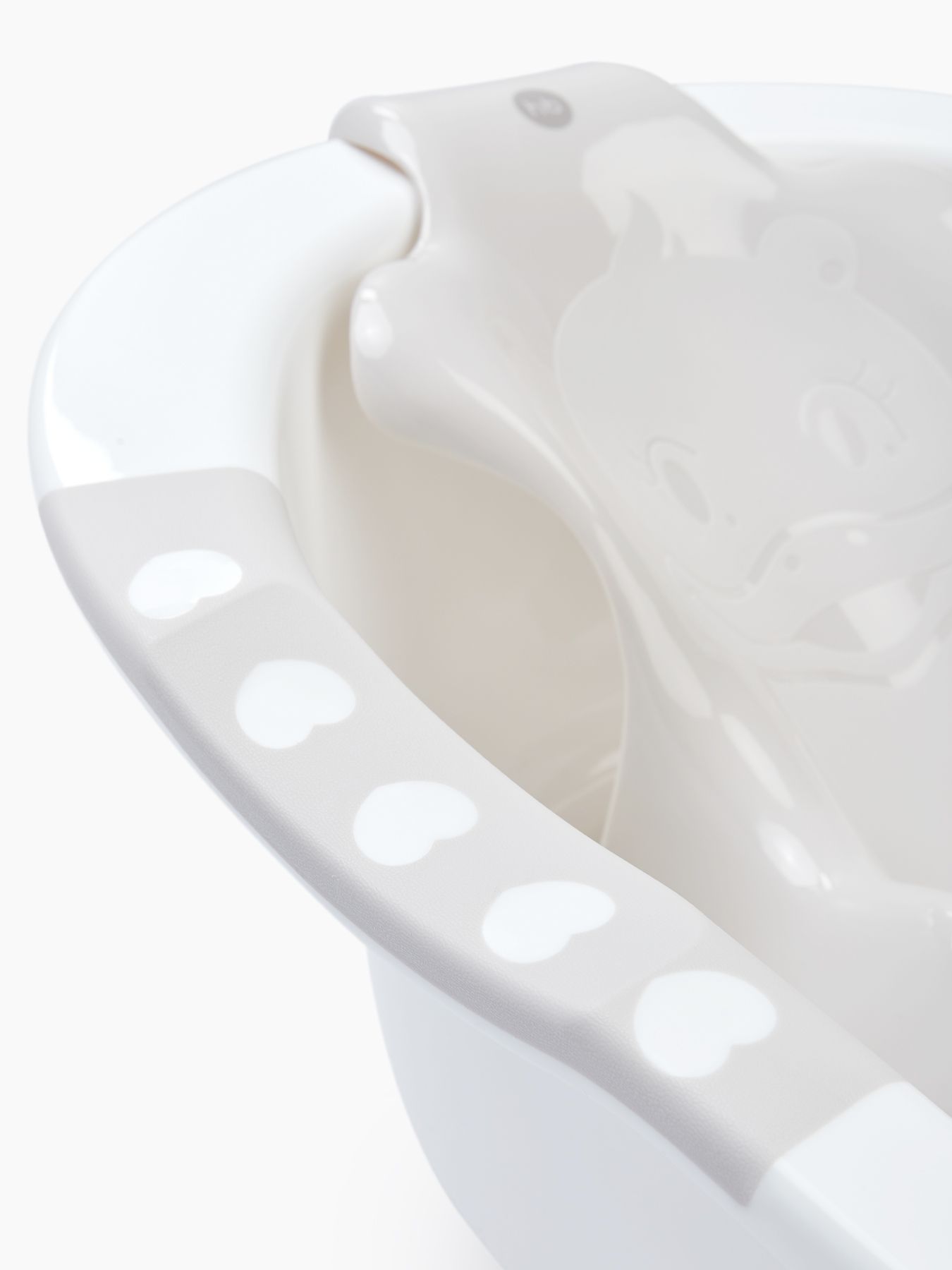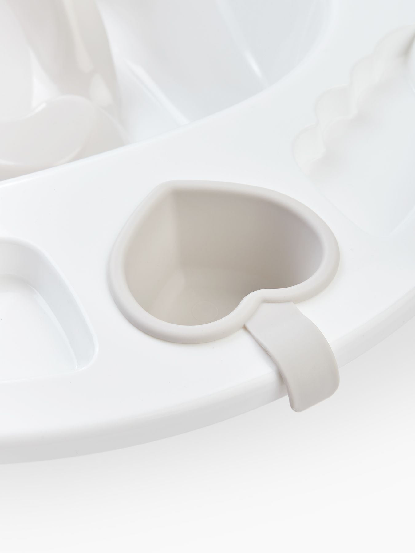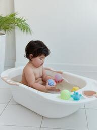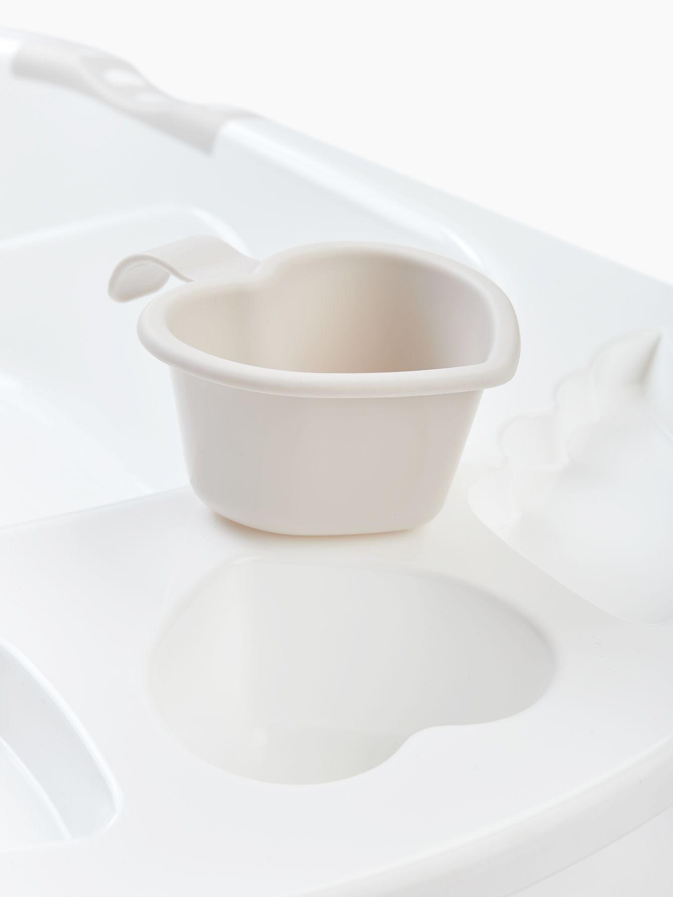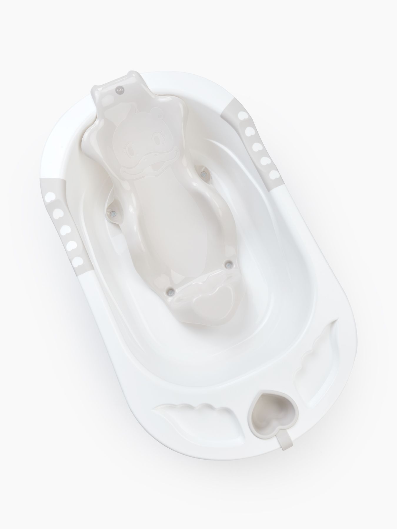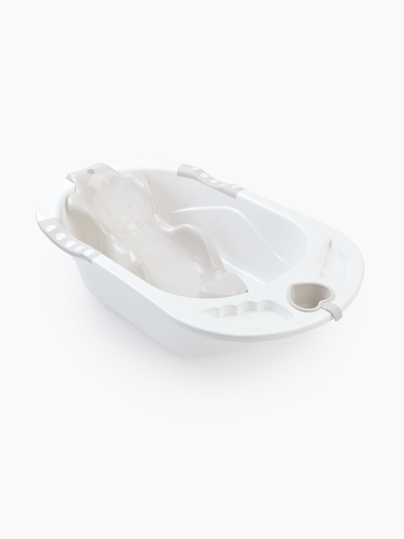 Ванночка для купания малыша с самого рождения. Благодаря белому цвету вы всегда сможете отследить концентрацию трав или любых других растворов, которые при необходимости нужно будет добавить в воду для купания ребёнка. Ванна BATH COMFORT изготовлена из высококачественного прочного пластика. В комплект входит анатомическая горка. Благодаря горке голова малыша всегда будет над водой, что позволит безопасно купать деток с самого рождения.