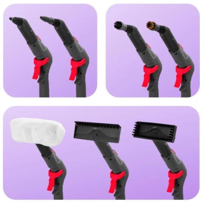 • Комплектация насадка для мойки окон,паровой пистолет,форсунка точечной струи,насадка для мытья полов