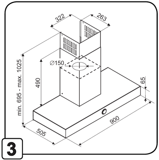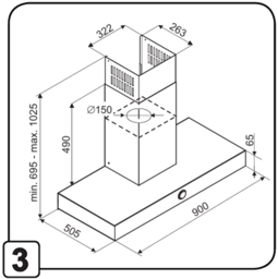 Вытяжка работает в режимах отвода и циркуляции, поэтому загрязнения удаляются из комнаты и перенаправляются в воздуховод, при этом можно очистить воздух и использовать повторно за счет возвращения его в помещение. Количество скоростей в этой модели: 3 шт. При этом максимальная производительность составляет 720 куб.м./ч. Уровень шума при полной загруженности — 65 дБ.