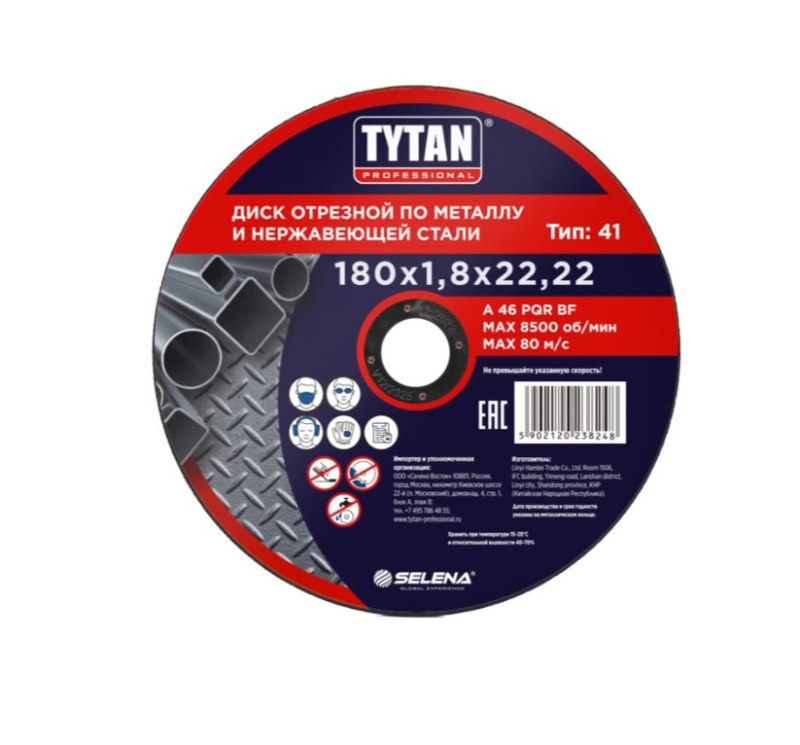 Диск отрезной по металлу 180х1,8х22,22мм A 46 PQR BF 38248 TYTAN Professional *1