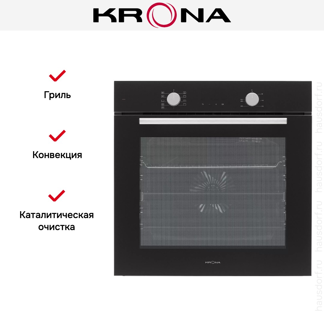 Готовьте свои лучшие блюда и пробуйте новые рецепты с духовым шкафом KRONA TAU 60 BL! Стандартные размеры и большой объем внутренней камеры — выбор тех, кто много готовит для семьи или частых праздничных встреч с друзьями. Желательно заранее продумать расположение такой модели в кухонном гарнитуре.