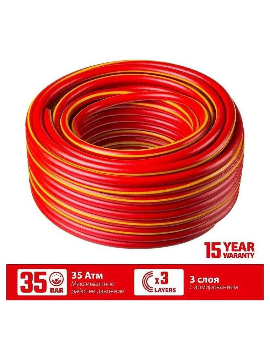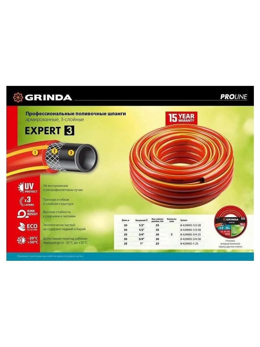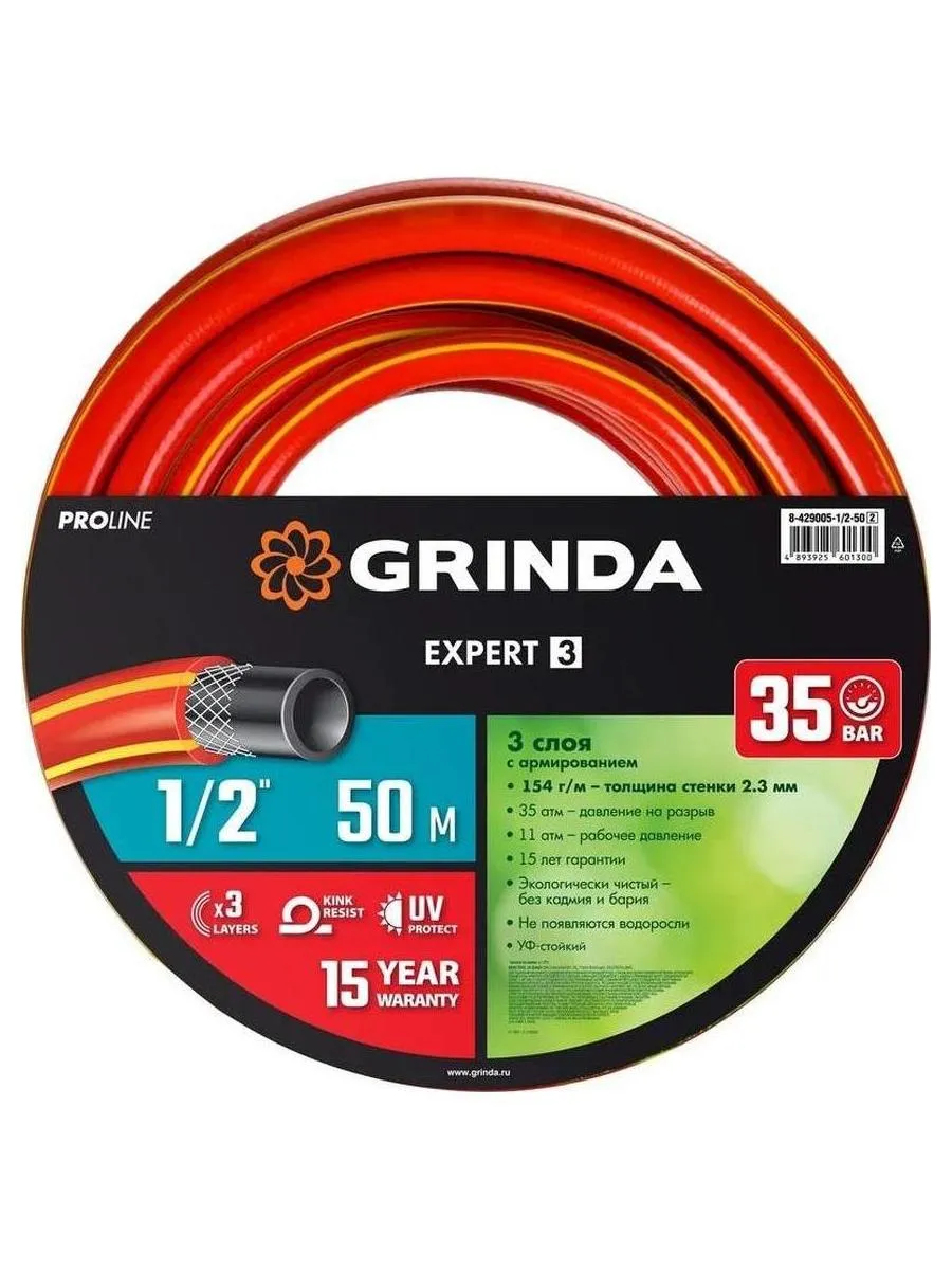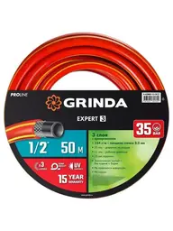 Описание товара Шланг поливочный GRINDA EXPERT 3, 1/2?, 50 м, 35 атм, трёхслойный, армированный, PROLine (8-429005-1/2-50)