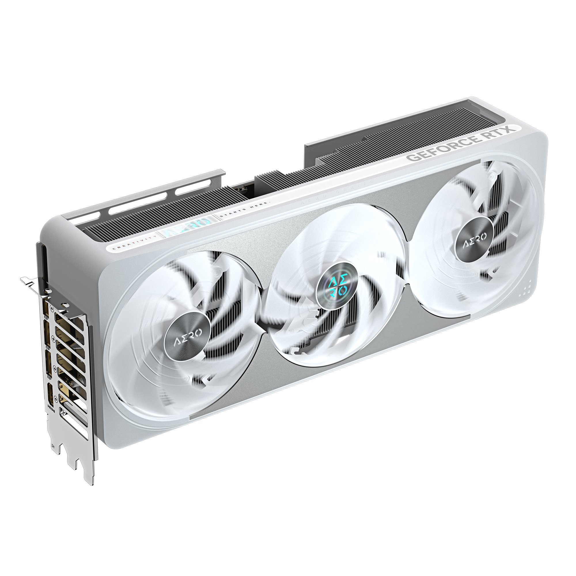 Габариты видеокарты составляют 340 × 140 × 70 мм , что соответствует форм-фактору ATX. Подключение осуществляется через интерфейс PCI-E 5.0 , а питание подается через один 16-контактный разъём. Система охлаждения AERO обеспечивает эффективное теплоотведение.