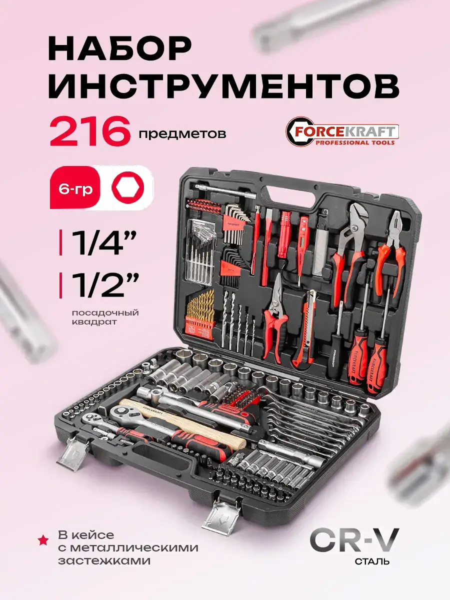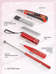 • Доп. комплектация фонарик (1 шт.), рукоятка (1 шт.), кейс, лезвия для ножей (11 шт.), магнит телескопический (1 шт.), адаптер-переходник (1 шт.), маслосливная пробка (2 шт.)