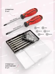 • Отвертки шлицевая (SL) (1 шт.), крестовая (PH) (1 шт.), индикаторная (1 шт.), для точных работ (6 шт.)