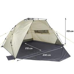 Особливостісумка-чохол , кілочки , Швидкозбірний каркас , Високий рівень захисту від ультрафіолету UV 50+ , Піщані кишені і відтяжки для надійної фіксації намету , Підлога рансформується в двері і закриває вхід до намету