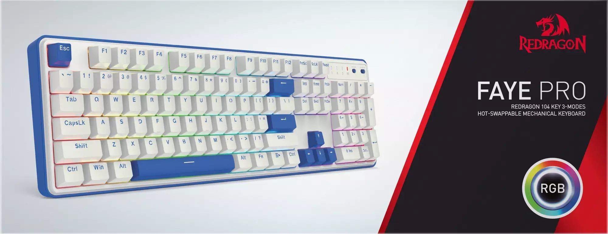 Клавиатура Redragon Faye Pro, русские и английские буквы, синий (72257)