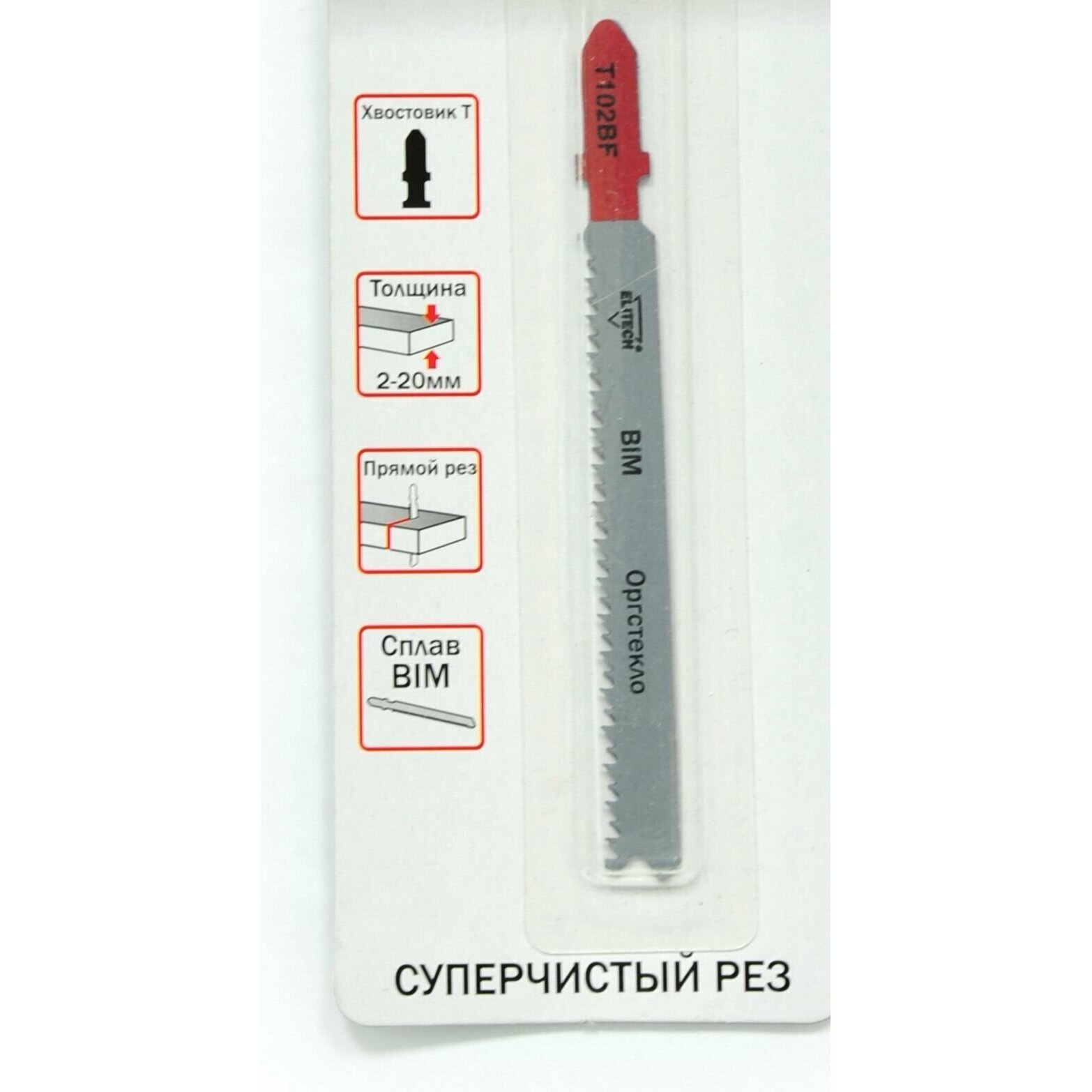 Пилка для лобзика ELITECH 1 820.0857 BIM, 67мм, рез 2-20мм, для оргстекло (РММА), чистпропил (T102BF) 1шт