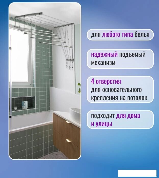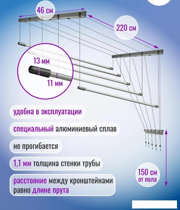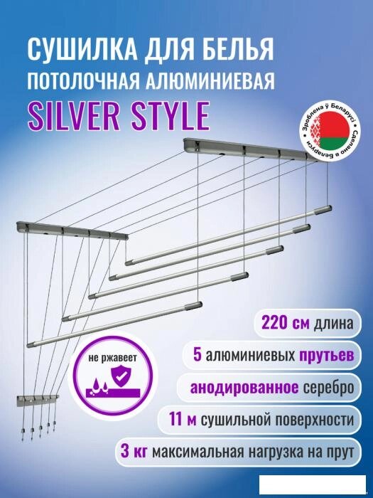 Сушилка для белья Comfort Alumin Group Потолочная 5 прутьев Silver Style 220 см (алюминий)