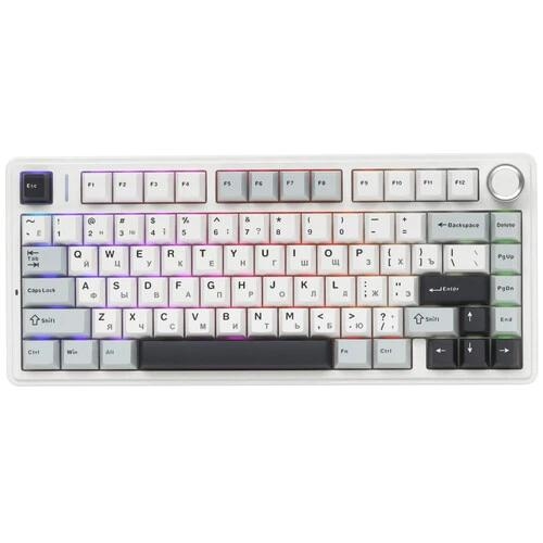 AULA F75 - механическая клавиатура с тремя вариантами подключения: проводное, радиоканал и Bluetooth, RGB подсветкой и роллером для управления эффектами и мультимедийными функциями.