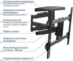 Кронштейн для телевизора Kromax ATLANTIS-60, 26-65", настенный, поворотно-выдвижной и наклонный, черный (28015)