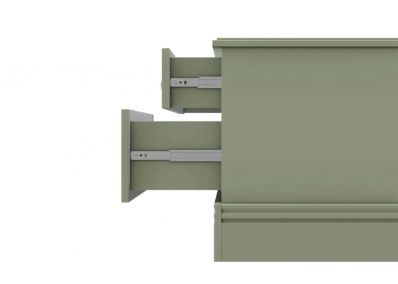 Корпус тумбы выполнен из ЛДСП в цвете Зеленый Самшит, что обеспечивает её прочность и долговечность. Эта тумба станет не только практичным элементом мебели, но и стильным акцентом в вашем интерьере, идеально сочетаясь с другими элементами спальни.