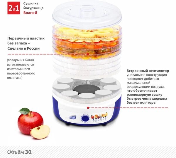 Сушилка для овощей и фруктов Великие Реки Волга-8