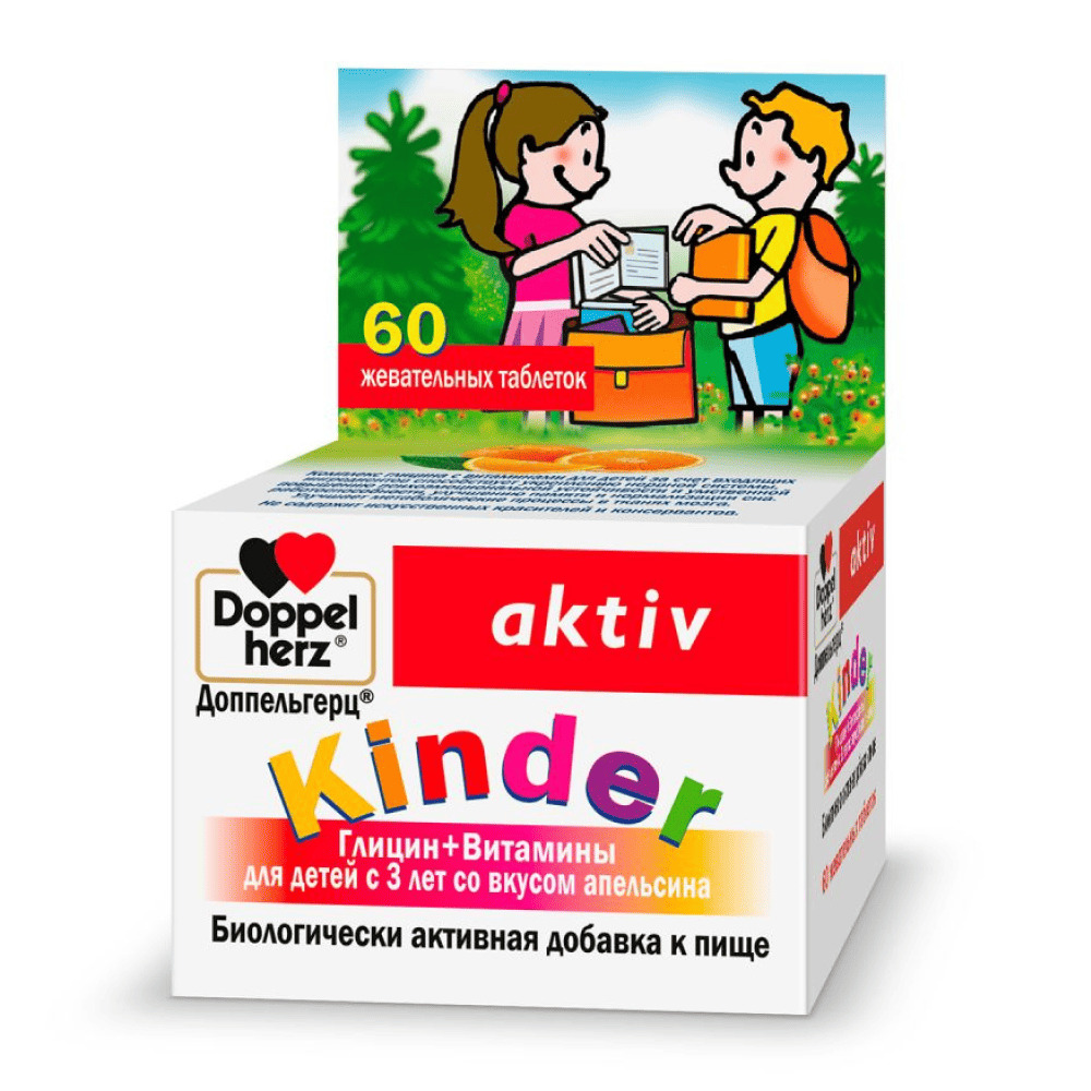 Doppelherz Aktiv Kinder Глицин+Витамины для детей с 3 лет со вкусом апельсина – жевательные таблетки с приятным апельсиновым вкусом, разработанные специально для поддержки нервной системы и умственного развития ребенка. <br>