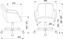 • Ширина с подлокотниками 580 мм