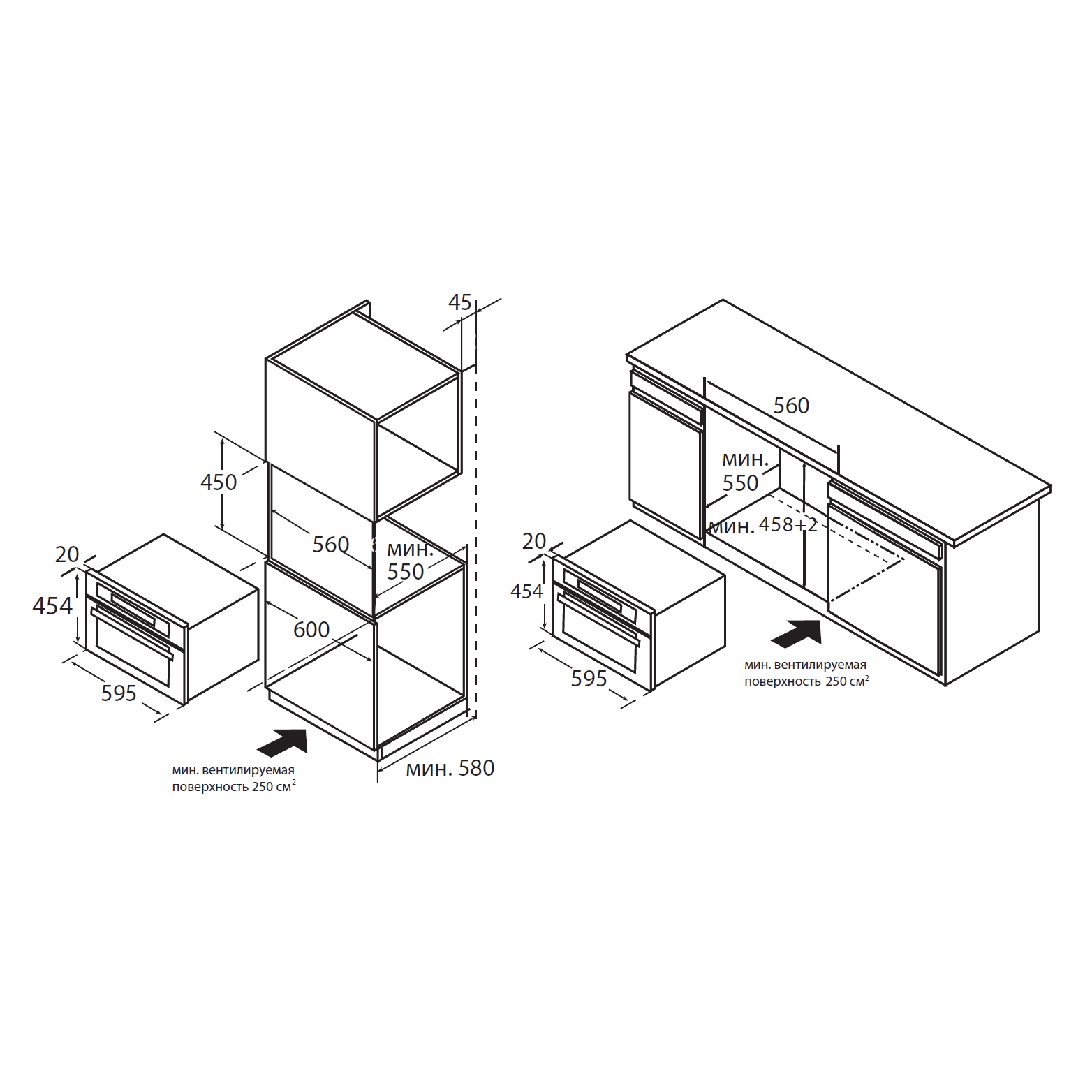 Духовой шкаф компактный с СВЧ Weissgauff OE 446 Black Edition