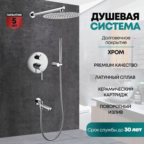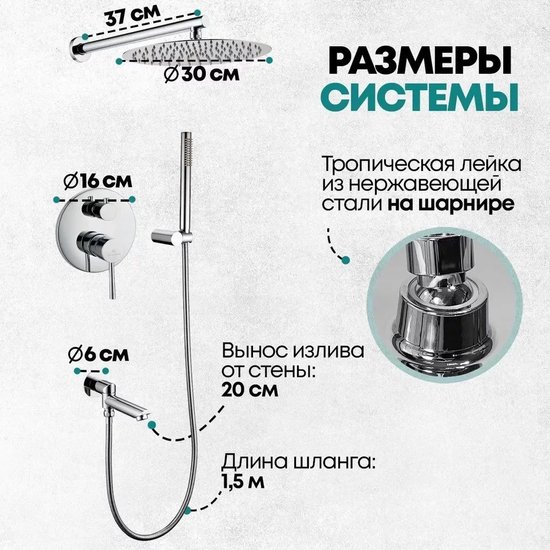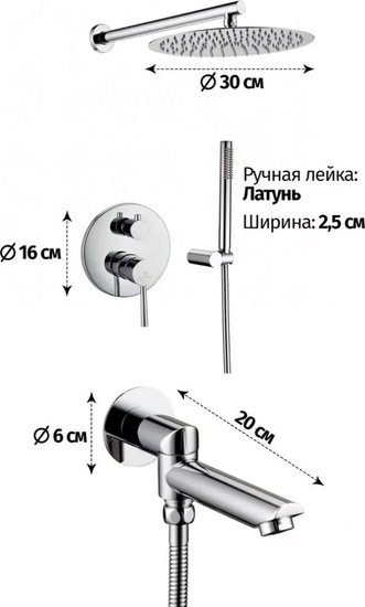 • Комплектация верхний душ, ручной душ (лейка), шланг
