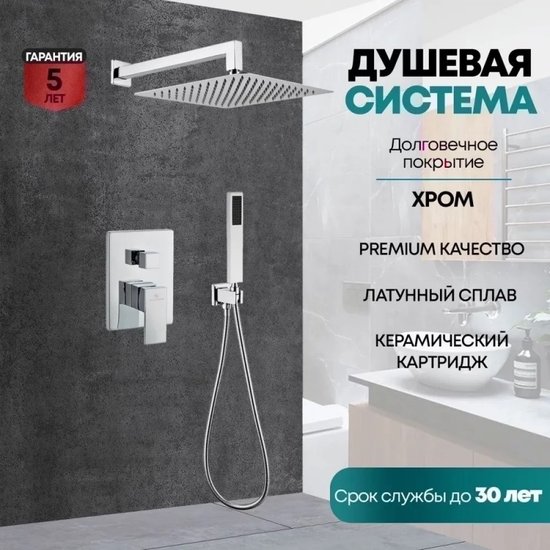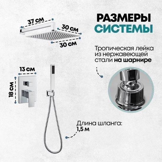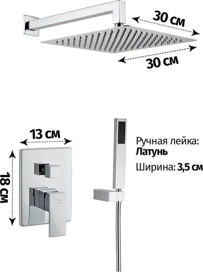 • Комплектация верхний душ, ручной душ (лейка), шланг