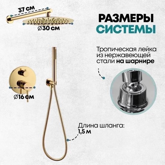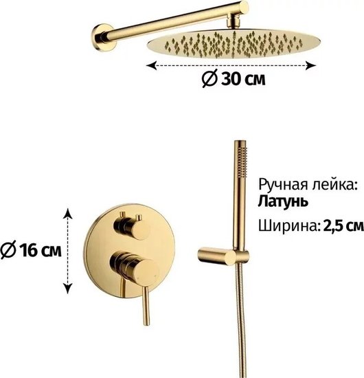 • Диаметр (ширина) верхнего душа 300 мм