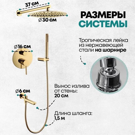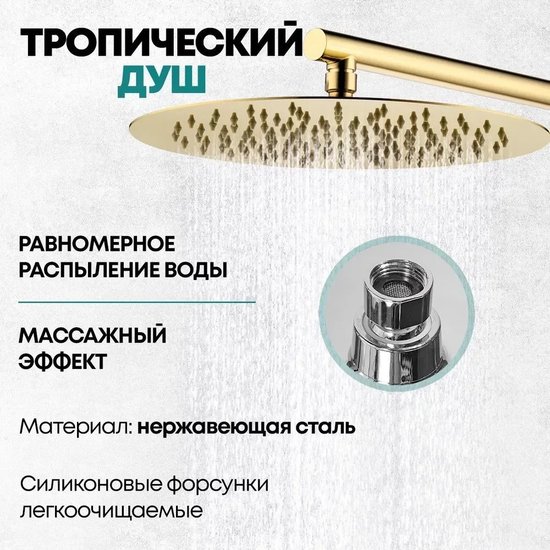 • Комплектация верхний душ, ручной душ (лейка), шланг