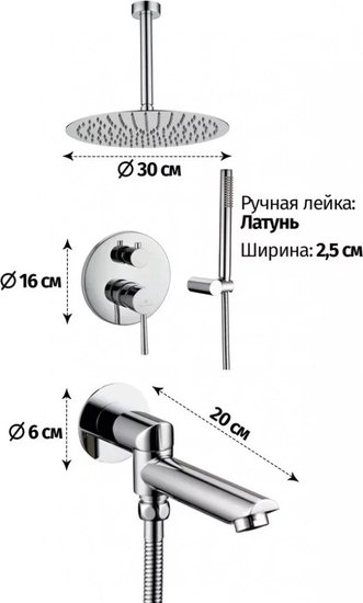 • Комплектация верхний душ, ручной душ (лейка), шланг