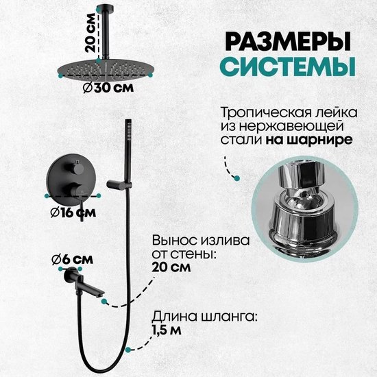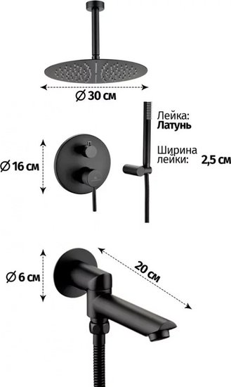 • Комплектация верхний душ, ручной душ (лейка), шланг