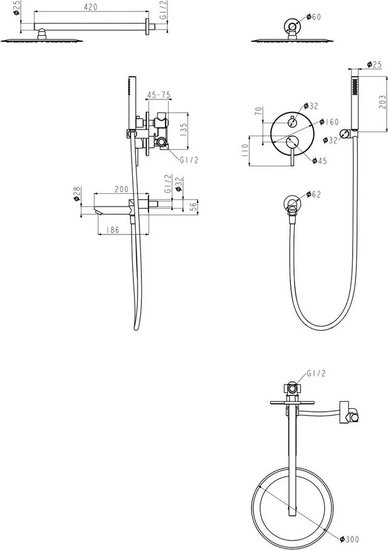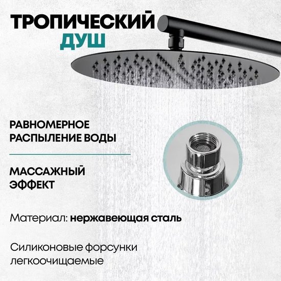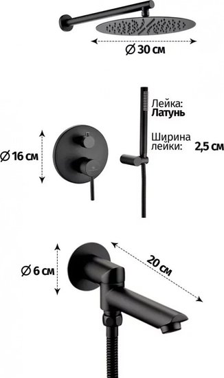 • Комплектация верхний душ, ручной душ (лейка), шланг