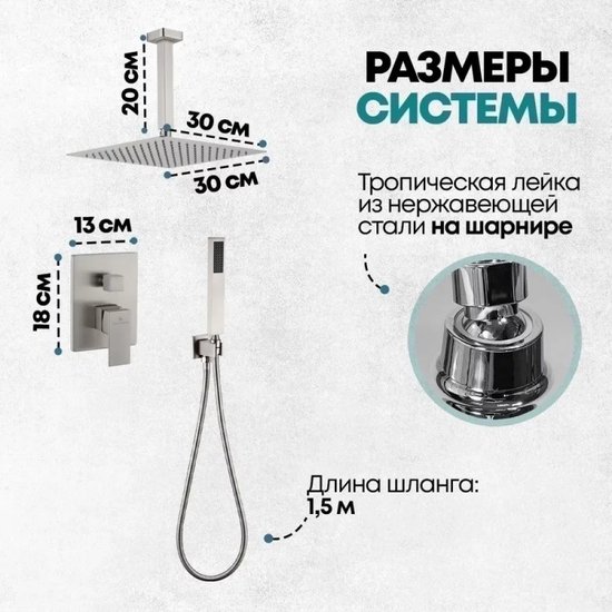 • Комплектация верхний душ, ручной душ (лейка), шланг