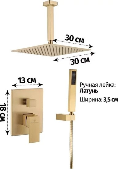 • Комплектация верхний душ, ручной душ (лейка), шланг