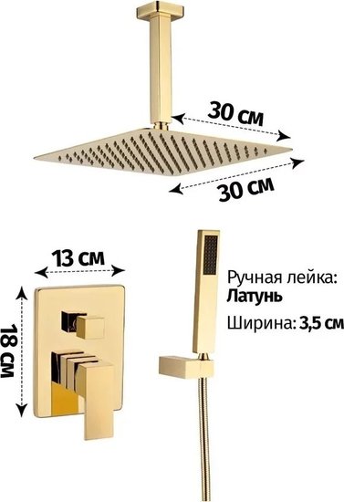• Комплектация верхний душ, ручной душ (лейка), шланг