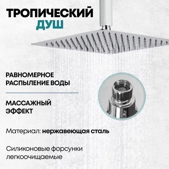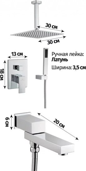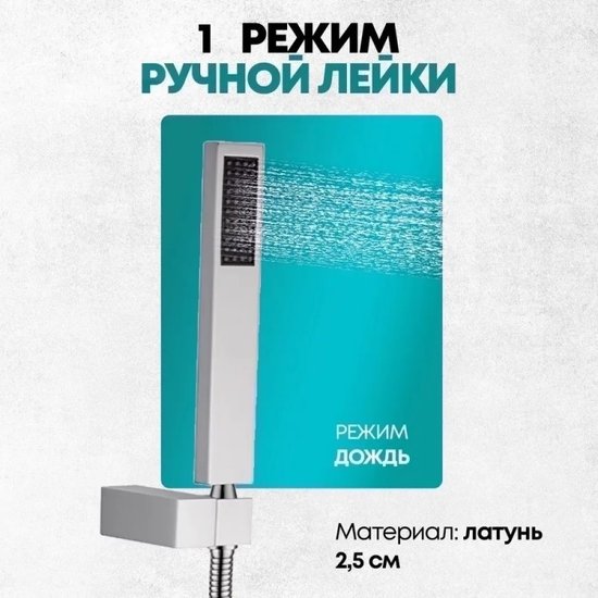 • Комплектация верхний душ, ручной душ (лейка), шланг