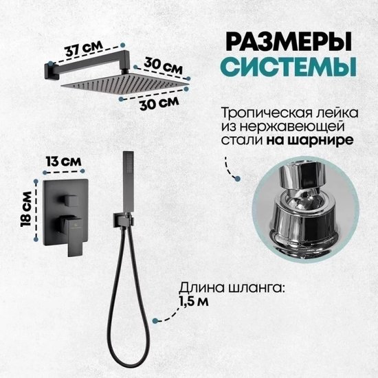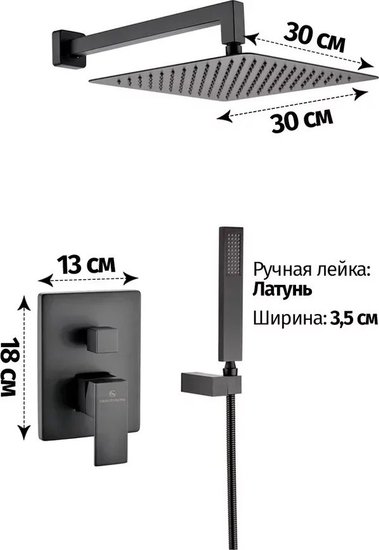 • Комплектация верхний душ, ручной душ (лейка), шланг