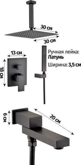 • Комплектация верхний душ, ручной душ (лейка), шланг
