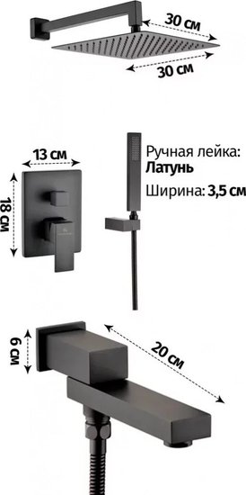 • Форма верхнего душа прямоугольная