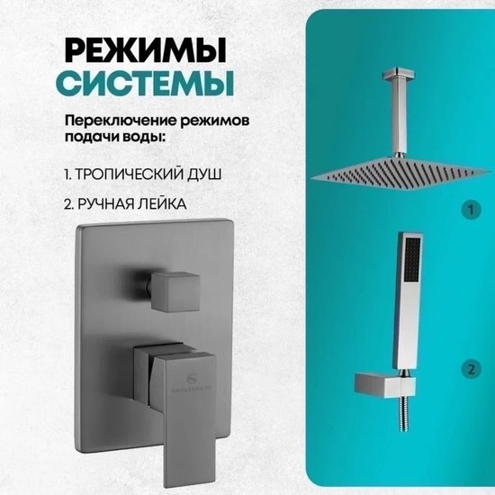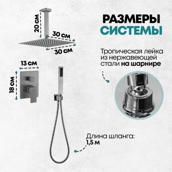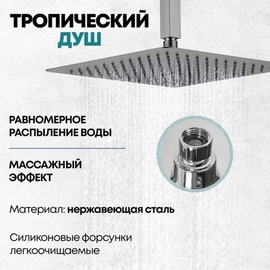 • Комплектация верхний душ, ручной душ (лейка), шланг