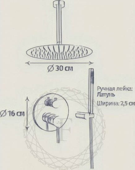 • Диаметр (ширина) верхнего душа 300 мм