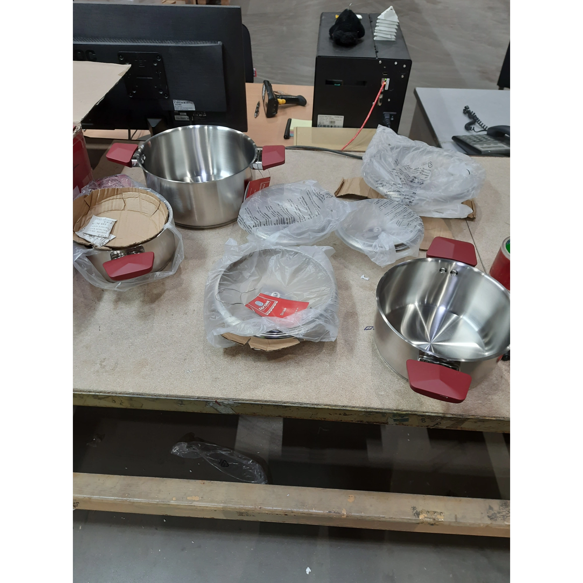 ОписаниеПосуда коллекции Strike, изготовленная из высококачественной нержавеющей стали. Особому комфорту в работе способствуют ручки с покрытием Soft Touch, а внутренние отметки литража позволяют обходиться без использования мерных кружек. Цвет аксессуаров: в одном случае они серые, в другом красные.