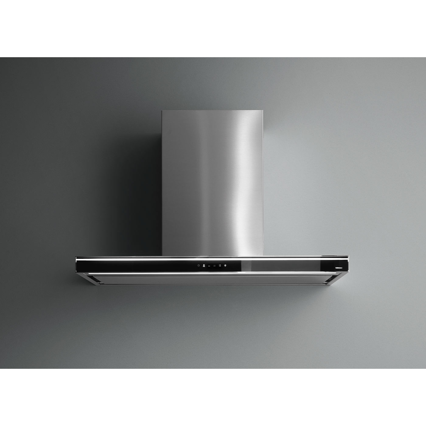 Вытяжка FALMEC LUMINA NRS GLASS BLACK 120, серия Silence - NRS, 120 см, Т-образная, сенсорное управление, неоновое освещение, периметральное всасывание, технология бесшумной работы NRS, 4 скорости, отвод/циркуляция, режим 24 часа, макс. производительность 800 м3/ч, угольный фильтр (опция), энергоэффективность В, цвет нержавеющая сталь/черное стекло