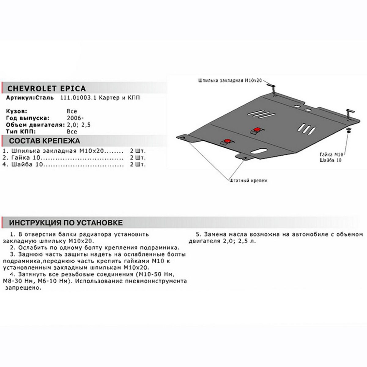 Защита картера и КПП АвтоБРОНЯ для Chevrolet Epica 2006-2012