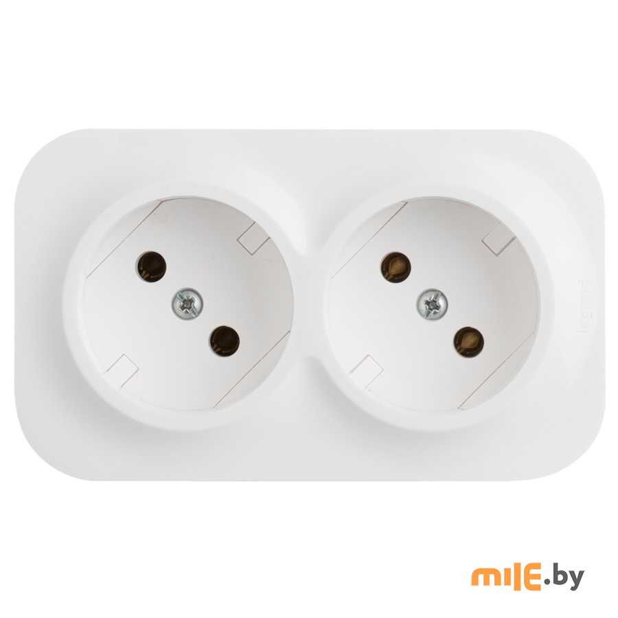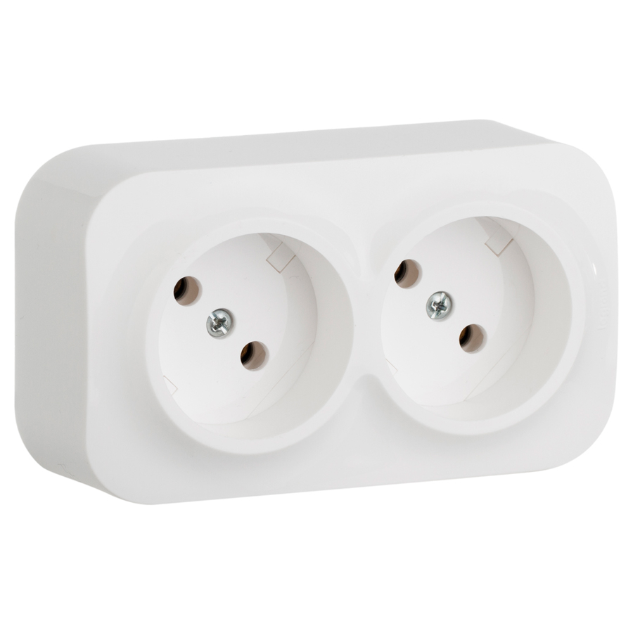 Розетка накладного монтажа двойная 2п 16А 250В немецкого стандарта, без детской защиты, винтовые клеммы.