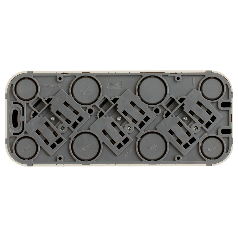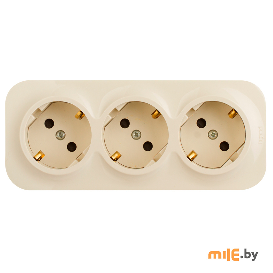 Розетка накладного монтажа тройная 2п+З 16А 250В немецкого стандарта, с детской защитой, винтовые клеммы.