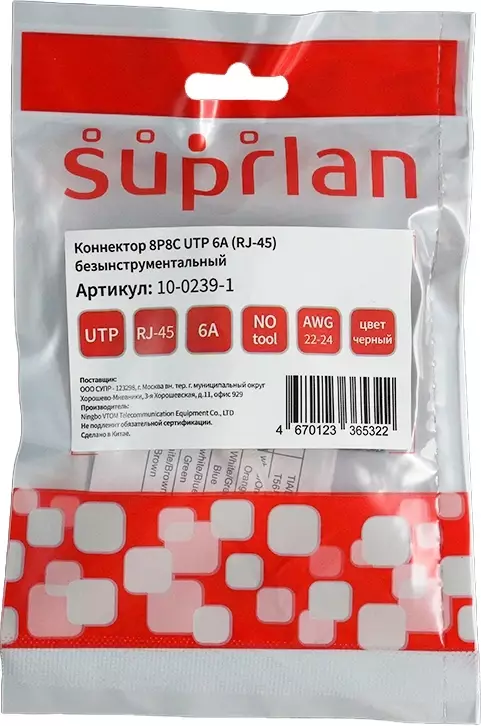 Коннектор Suprlan (10-0239-1) UTP кат.6A RJ45 с защитным колпачком прозрачный
