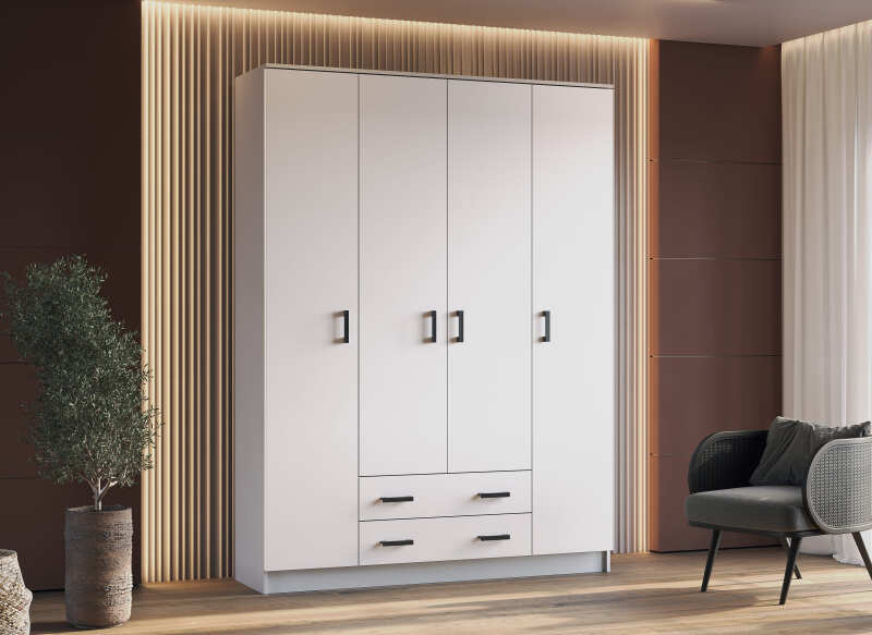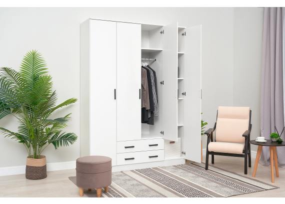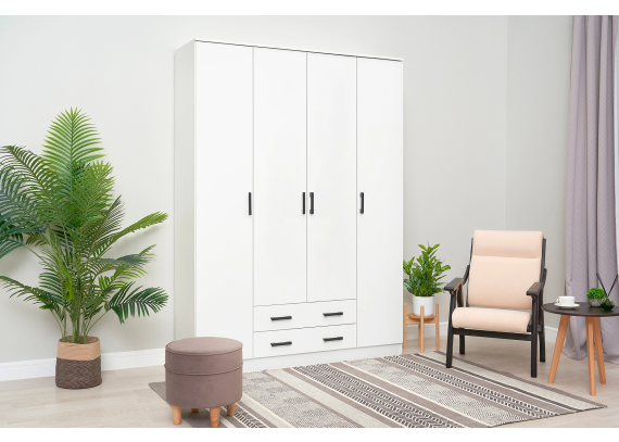 Шкаф 4-створчатый Квадро без зекрала Белый гладкий