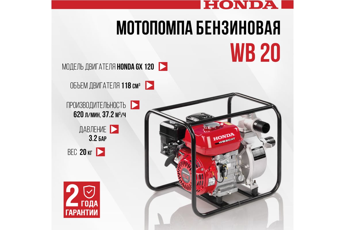 Широкое основание - устойчивость Honda WB20XT4DRX;
