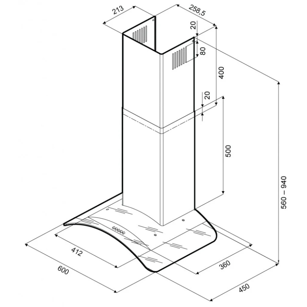 - Размеры, мм (ШхГхВ) 600х450х560-940