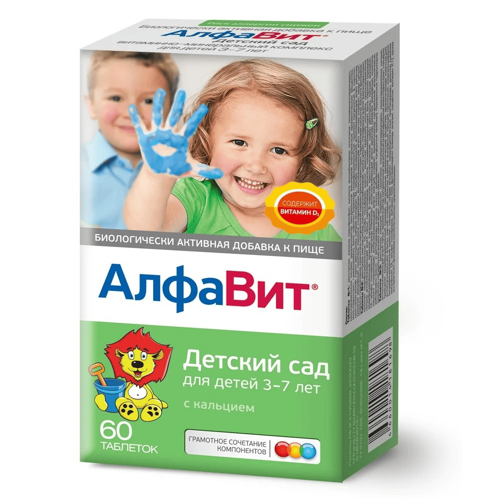 Алфавит Детский сад – специально разработанный витаминно-минеральный комплекс для детей дошкольного возраста (3-7 лет), учитывающий особенности растущего организма. Содержит 11 витаминов и 8 минералов, включая йод, кальций и железо в оптимальных дозировках для поддержки иммунитета, развития интеллекта и укрепления костной системы.<br>