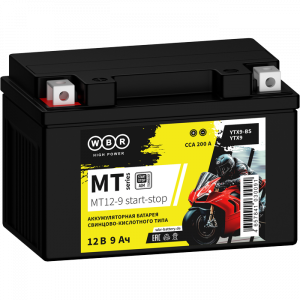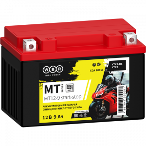 Герметизированные, выполненные по технологии AGM, карбоновые стартерные свинцово-кислотные аккумуляторные батареи WBR серии MT12-9 start-stop обладают высоким качеством и надёжностью. Расчётное количество циклов пуска двигателя не менее 180 000.